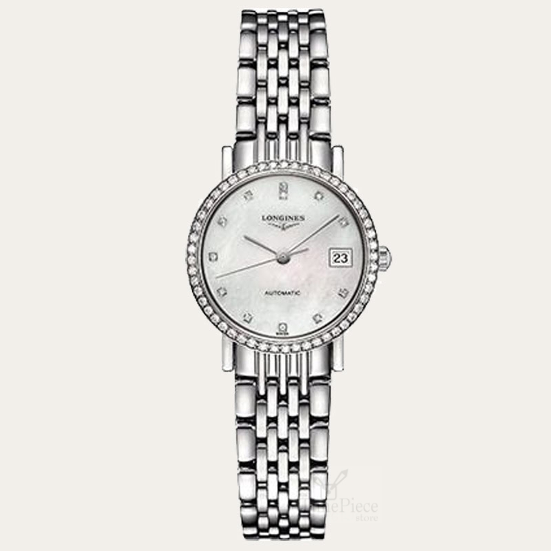 LONGINES L4.309.0.87.6 ladies watch from the Elegant collection has a 26 mm case.