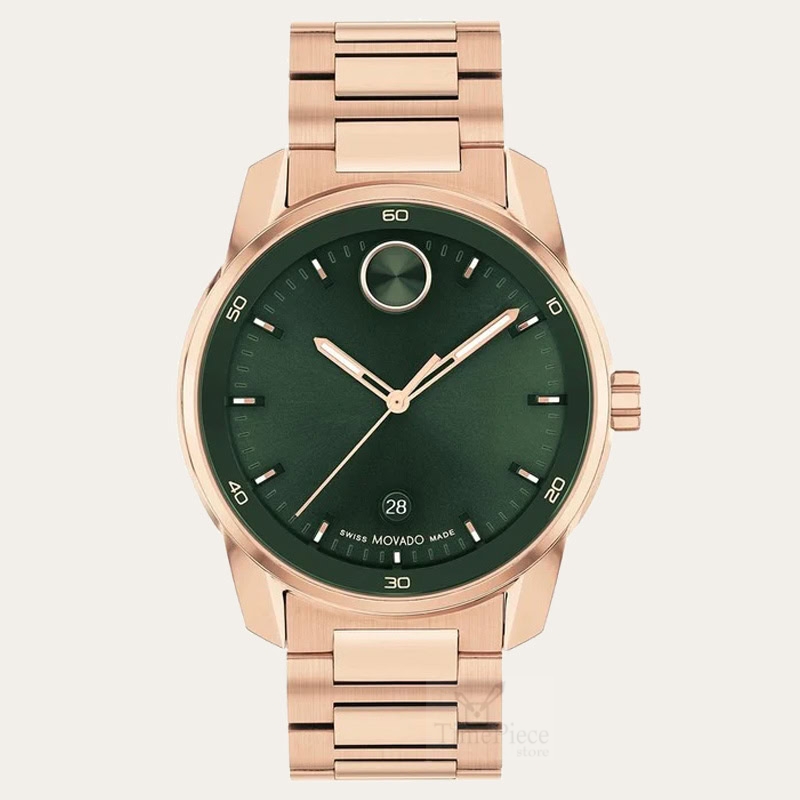 It has a green dial, paired with stainless steel with rose gold pvd bracelet.